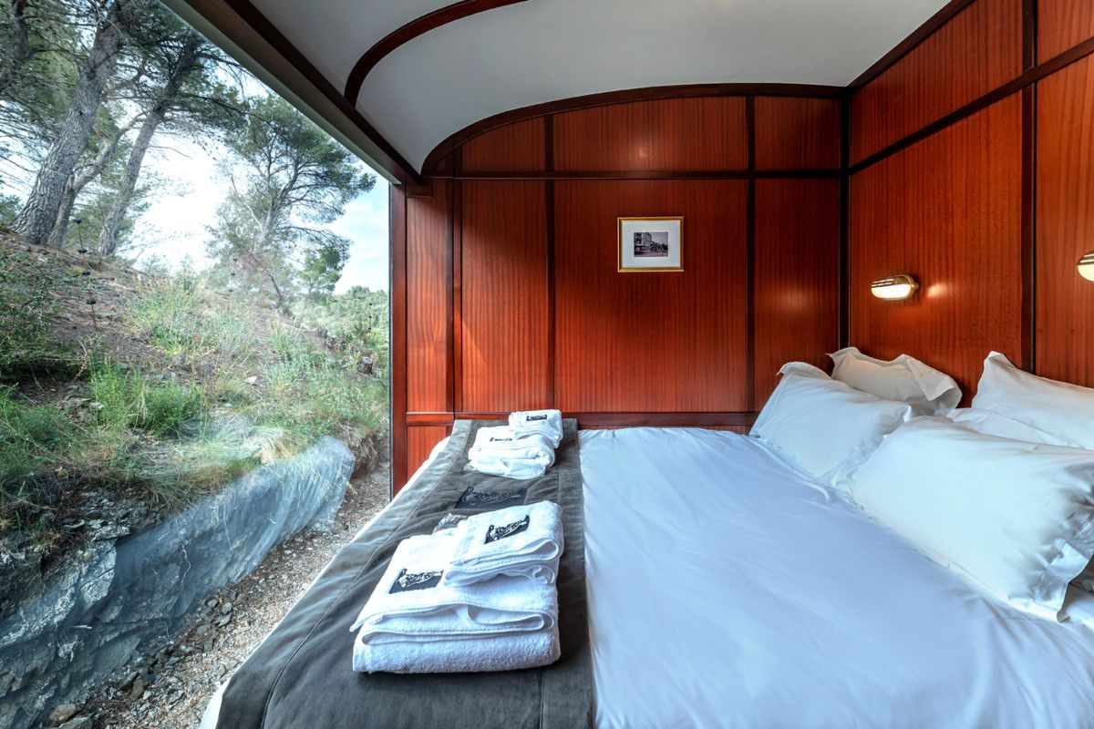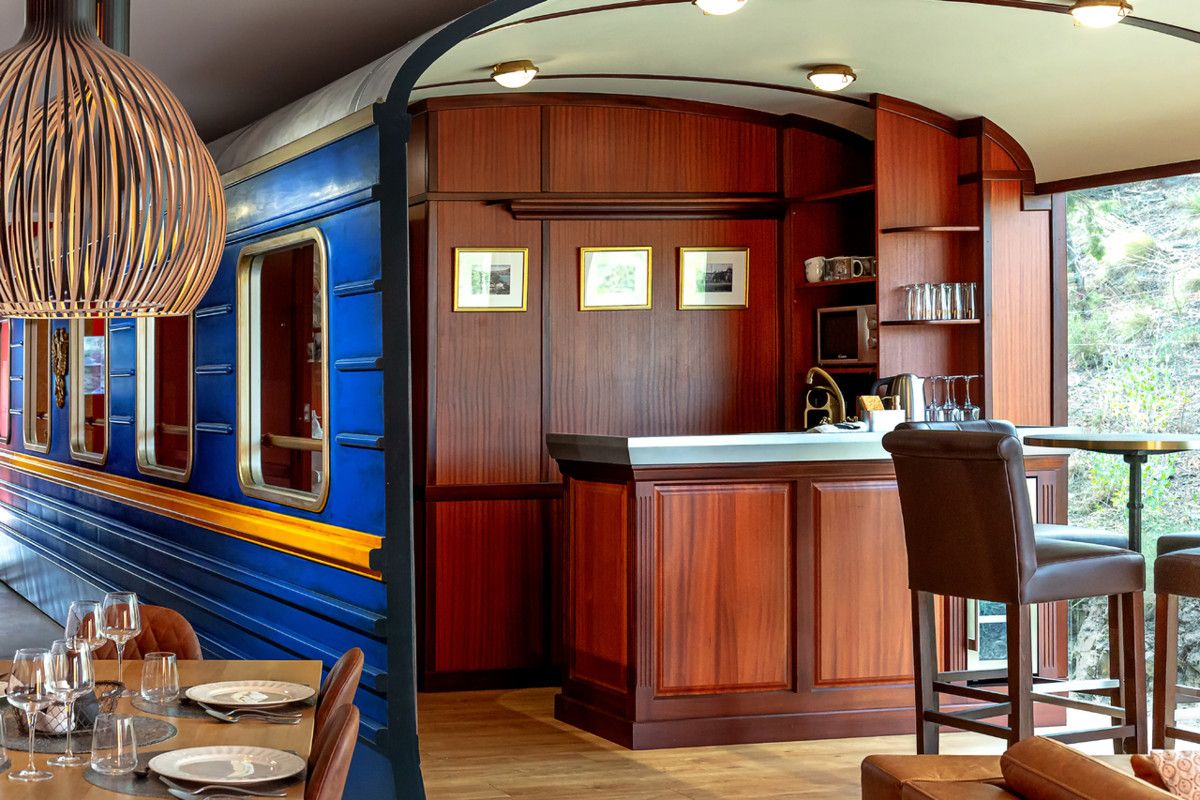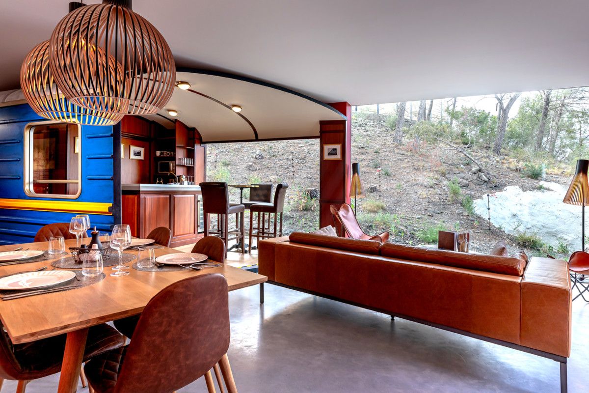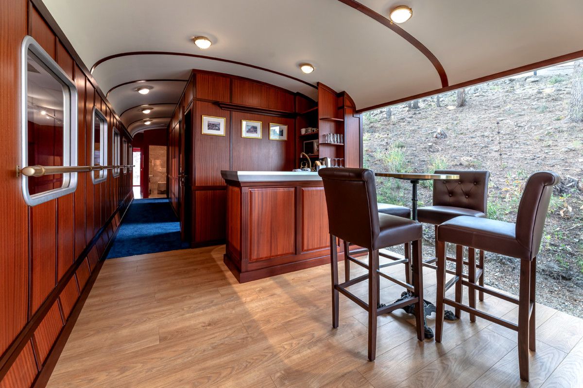 Un concepto único en Europa, inspirado en el legendario Ferrocarril Transiberiano. Con vistas panorámicas, disfrute de amplios ventanales con vistas al territorio del oso pardo y el lobo en la sala de estar, el comedor, los dormitorios, el baño y la terraza. Disponemos de una terraza con muebles de jardín y de salón.