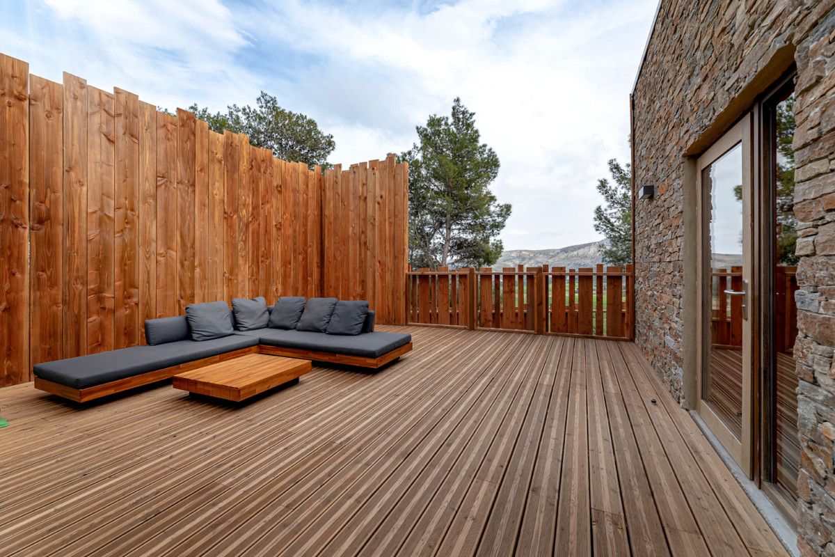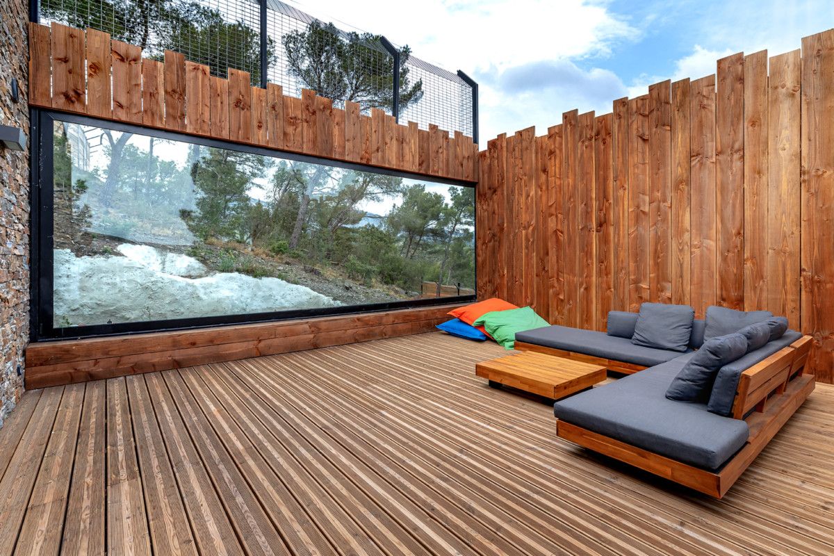 Per reduir l'impacte sobre l'espai natural, hem limitat el nombre d'eco-lodges a 12 per a 26 hectares, és a dir, una superfície màxima de només un 4%. Els nostres allotjaments estan coberts amb materials naturals com la fusta, la pedra o el corten de color rovell per integrar-se completament amb el paisatge.S'ha fet un esforç especial en el consum d'aigua, l'estalvi energètic i la instal·lació d'un sistema de depuració biològica vegetal. Tots els productes utilitzats per al manteniment dels eco-lodges estan certificats ecològics i respectuosos del medi ambient. Finalment, apliquem una política de limitació i reciclatge de residus..