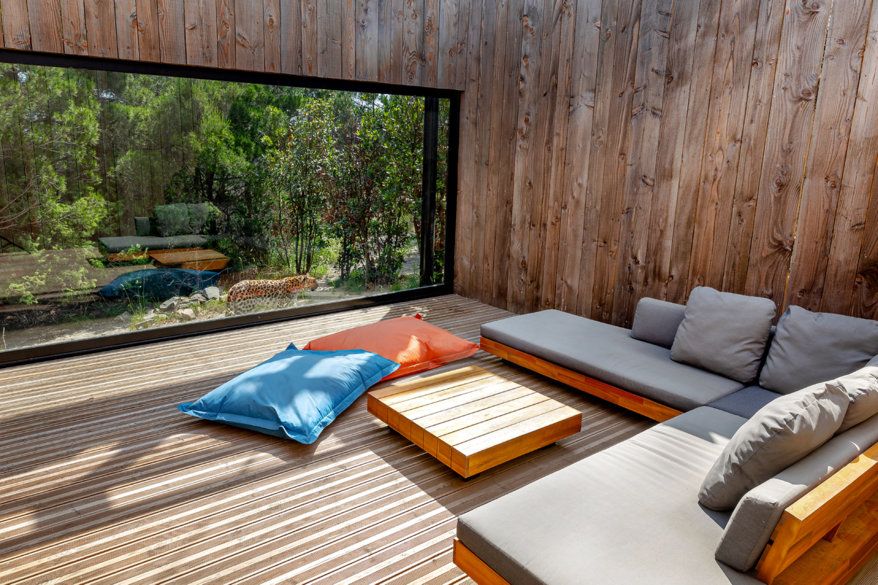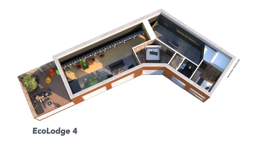 Per reduir l'impacte sobre l'espai natural, hem limitat el nombre d'eco-lodges a 12 per a 26 hectares, és a dir, una superfície màxima de només un 4%. Els nostres allotjaments estan coberts amb materials naturals com la fusta, la pedra o el corten de color rovell per integrar-se completament amb el paisatge.S'ha fet un esforç especial en el consum d'aigua, l'estalvi energètic i la instal·lació d'un sistema de depuració biològica vegetal. Tots els productes utilitzats per al manteniment dels eco-lodges estan certificats ecològics i respectuosos del medi ambient. Finalment, apliquem una política de limitació i reciclatge de residus..