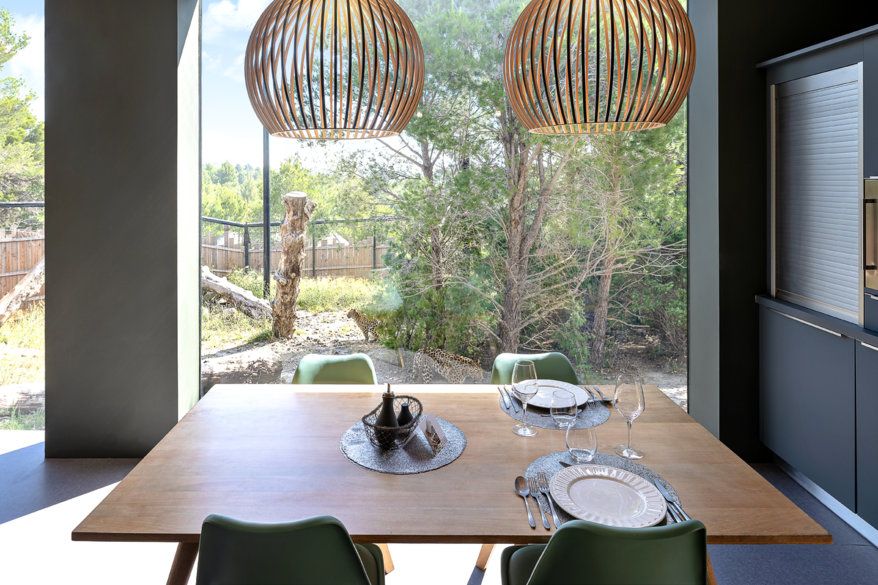 Un concepto único en Europa inspirado en la temática de la KGB. Disfrute de amplios ventanales con vistas al territorio del tigre de Amur desde la sala de estar, el comedor, los dormitorios, el baño y la terraza. Terraza con muebles de jardín y de salón. 97 m² + 27 m² de terraza. Máximo 7 personas, incluyendo un bebé menor de 3 años. 2 dormitorios: 1 suite principal y 1 dormitorio con dos literas de 140 x 190 cm.