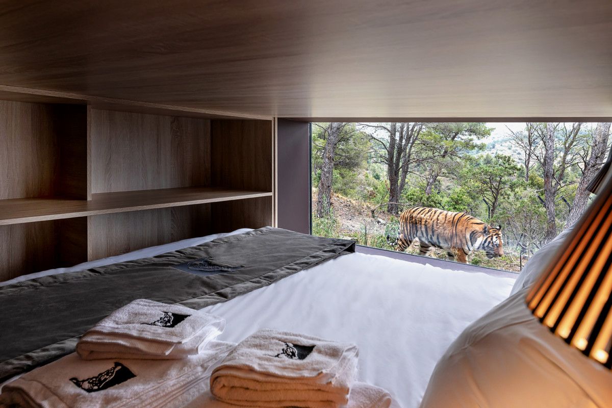 Un concepto único en Europa, inspirado en los pueblos del Lejano Oriente ruso. Disfrute de la privacidad y las vistas panorámicas desde los amplios ventanales con vistas a la tierra natal del tigre de Amur en la sala de estar, el comedor, los dormitorios, el baño y la terraza. La terraza cuenta con un conjunto de muebles de jardín y muebles de salón.