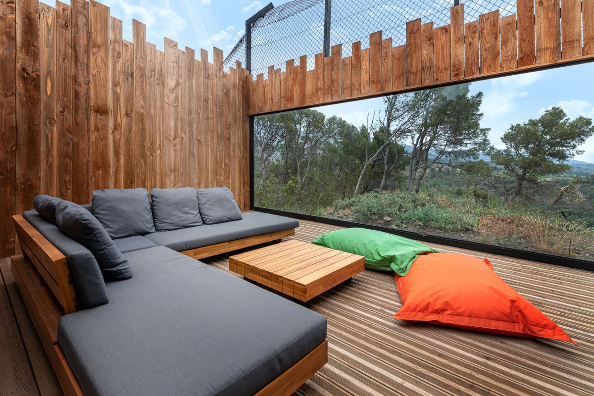 Per reduir l'impacte sobre l'espai natural, hem limitat el nombre d'eco-lodges a 12 per a 26 hectares, és a dir, una superfície màxima de només un 4%. Els nostres allotjaments estan coberts amb materials naturals com la fusta, la pedra o el corten de color rovell per integrar-se completament amb el paisatge.S'ha fet un esforç especial en el consum d'aigua, l'estalvi energètic i la instal·lació d'un sistema de depuració biològica vegetal. Tots els productes utilitzats per al manteniment dels eco-lodges estan certificats ecològics i respectuosos del medi ambient. Finalment, apliquem una política de limitació i reciclatge de residus..