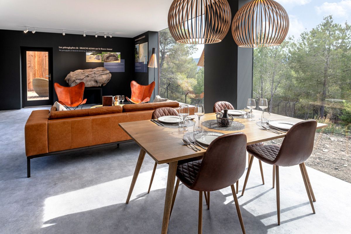 Un concepto único en Europa para descubrir el Krai de Primorie desde una nueva perspectiva a través del arte primitivo. Descubra a Alexander Solzhenitsyn o al explorador y escritor Antón Chéjov. Con vistas panorámicas, disfrute de amplios ventanales con vistas al territorio del tigre de Amur y a los dholes en la sala de estar, el comedor, los dormitorios, el baño y la terraza. La terraza cuenta con un conjunto de muebles de jardín y muebles de salón.
