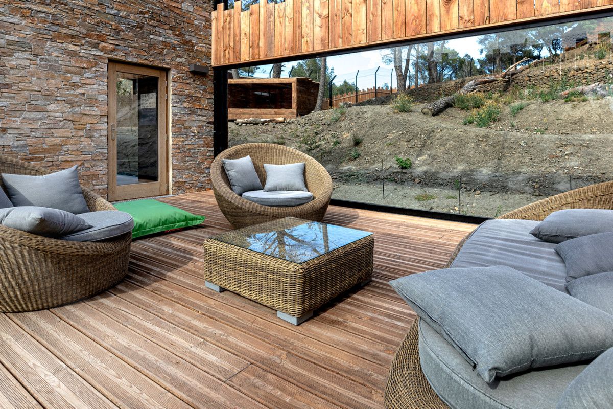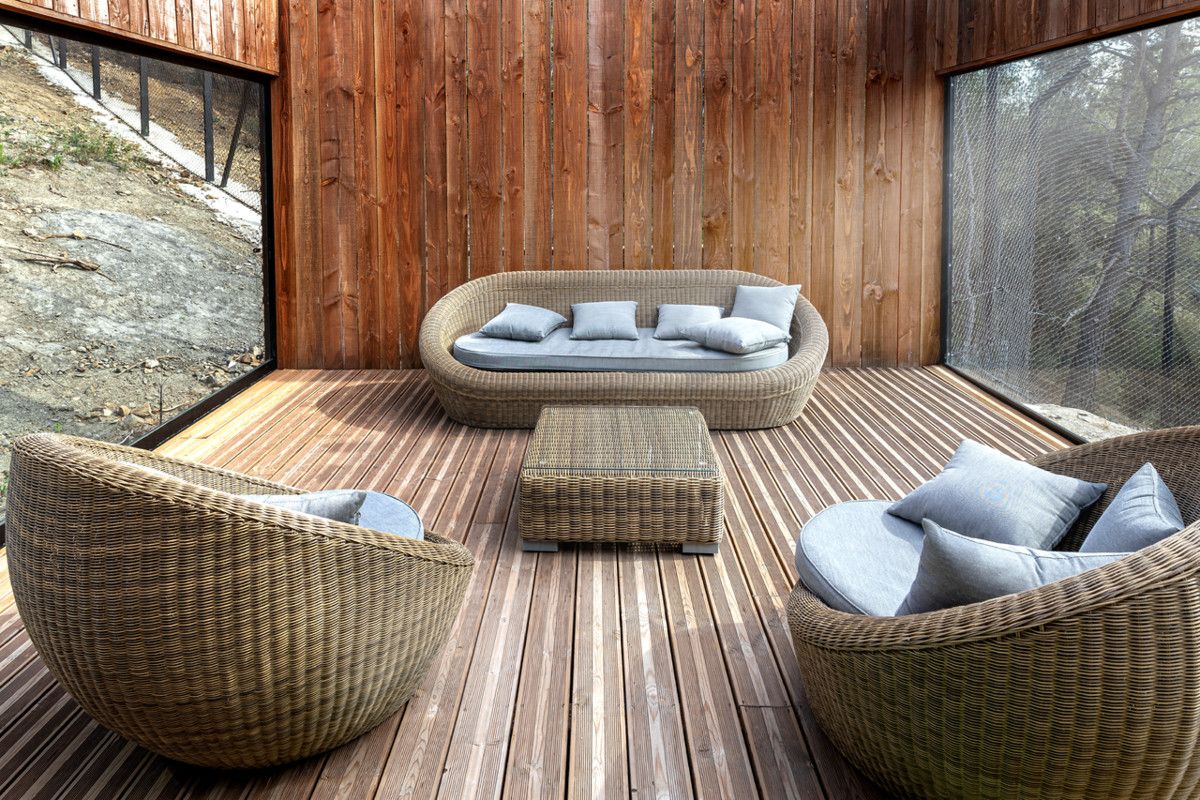 Per reduir l'impacte sobre l'espai natural, hem limitat el nombre d'eco-lodges a 12 per a 26 hectares, és a dir, una superfície màxima de només un 4%. Els nostres allotjaments estan coberts amb materials naturals com la fusta, la pedra o el corten de color rovell per integrar-se completament amb el paisatge.S'ha fet un esforç especial en el consum d'aigua, l'estalvi energètic i la instal·lació d'un sistema de depuració biològica vegetal. Tots els productes utilitzats per al manteniment dels eco-lodges estan certificats ecològics i respectuosos del medi ambient. Finalment, apliquem una política de limitació i reciclatge de residus..