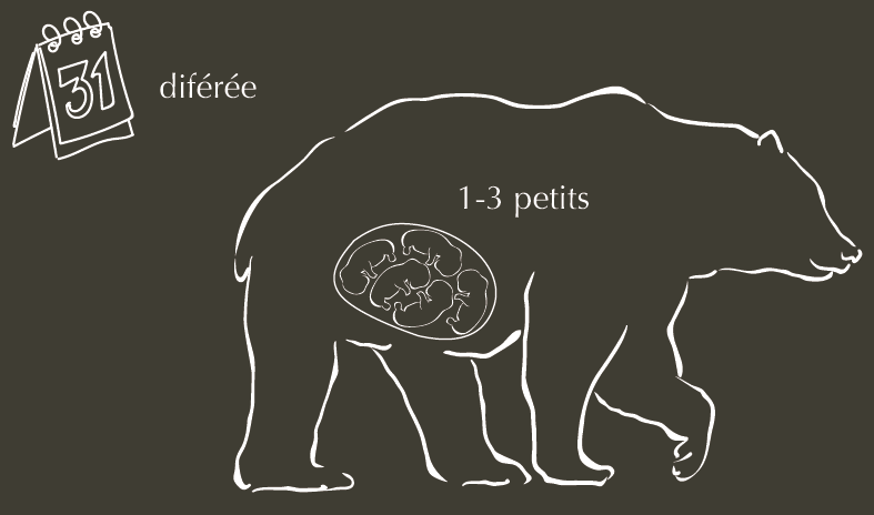 Durante el invierno, si la hembra carece de recursos suficientes, la gestación se detiene y no llega a término. Sin embargo, si se dan todas las condiciones adecuadas, comienza una gestación de dos meses. Este retraso en el desarrollo se denomina diapausa.