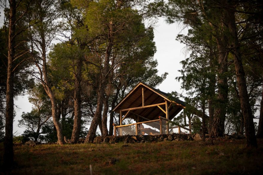 Per reduir l'impacte sobre l'espai natural, hem limitat el nombre d'eco-lodges a 12 per a 26 hectares, és a dir, una superfície màxima de només un 4%. Els nostres allotjaments estan coberts amb materials naturals com la fusta, la pedra o el corten de color rovell per integrar-se completament amb el paisatge.S'ha fet un esforç especial en el consum d'aigua, l'estalvi energètic i la instal·lació d'un sistema de depuració biològica vegetal. Tots els productes utilitzats per al manteniment dels eco-lodges estan certificats ecològics i respectuosos del medi ambient. Finalment, apliquem una política de limitació i reciclatge de residus..