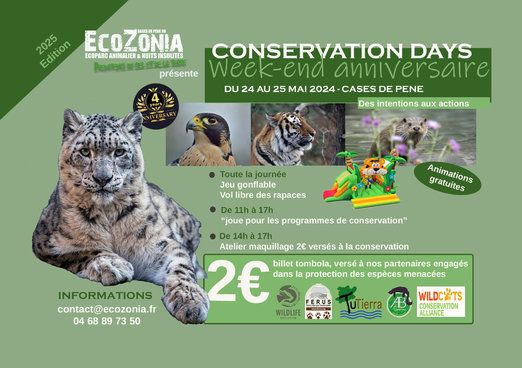 EcoZonia, « Terres de prédateurs » a le plaisir de vous présenter la nouvelle édition des « Conservation days » pour souffler nos 4 ans d’activités et d’actions en faveur des espèces menacées et des milieux !
