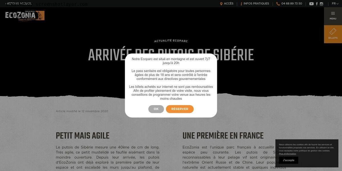 EcoZonia est l'unique parc français à accueillir cette espèce peu courante. Les putois de Sibérie, reconnaissables à leur pelage vif sont originaires de l'extrême Orient Russe et de Chine. Leur population naturelle est actuellement stable et quelques individus sont présents en parc animaliers de l'Europe de l'Est pour sensibiliser le public à cette espèce autrefois fortement chassée pour la fabrication de pinceaux à aquarelle.