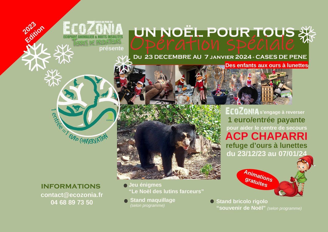 Pour chaque entrée payante entre le 23/12 et 07/01, EcoZonia s’engage a reversé 1 euro à la fondation bioparc conservation.