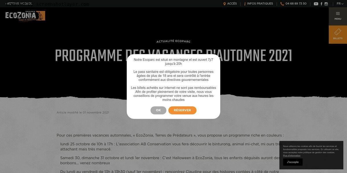 Actualité Ecoparc Programme des vacances d'automne 2021